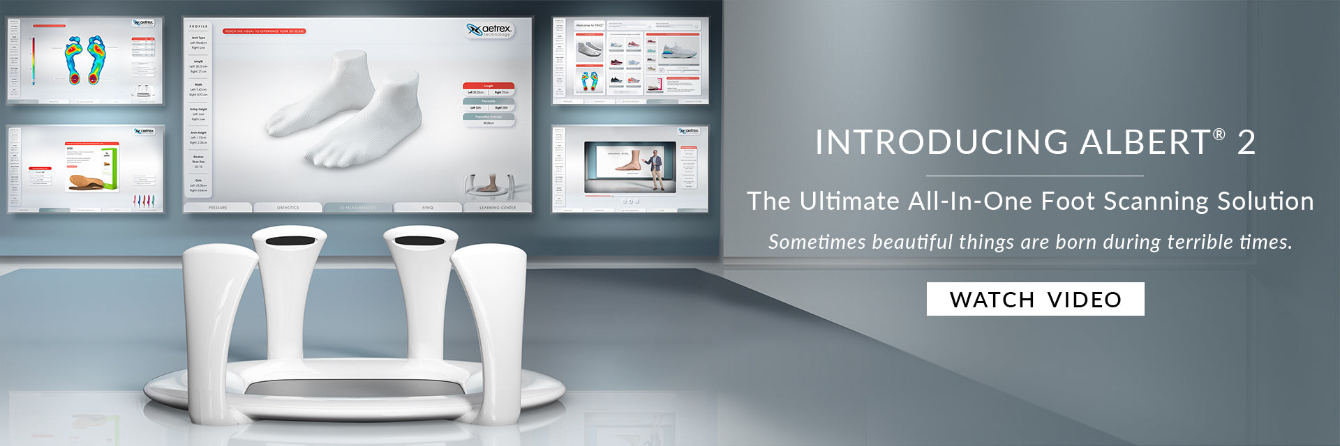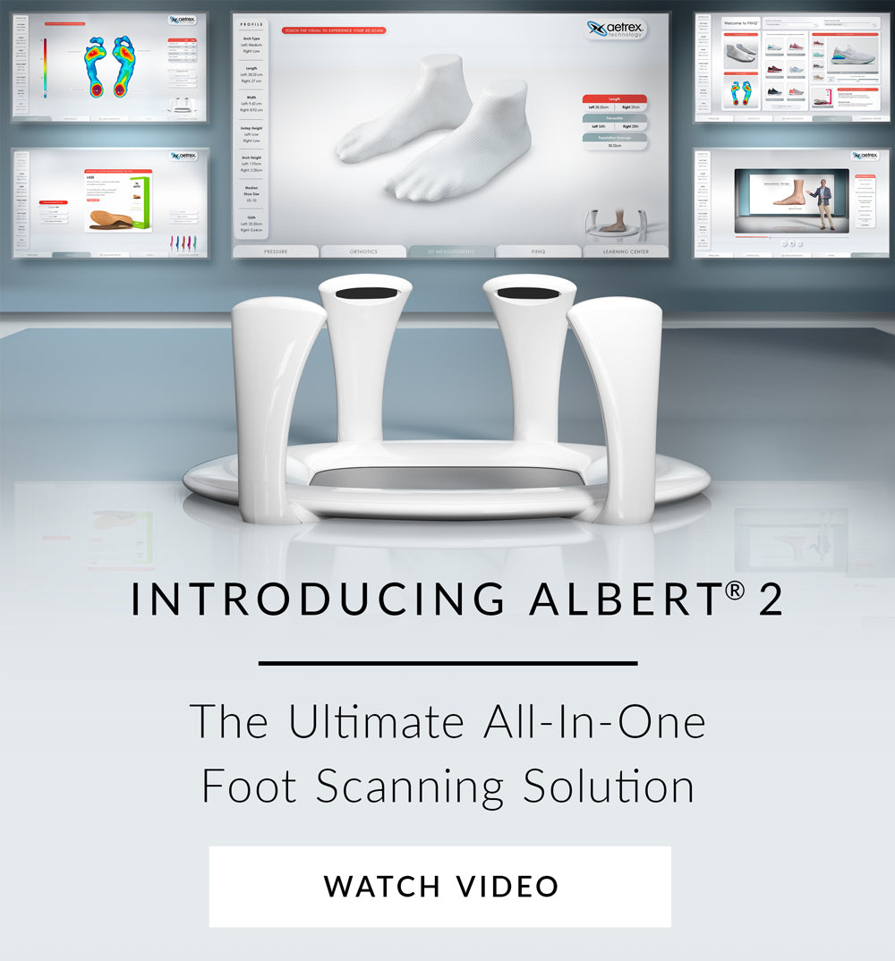 El procés d'escaneig ràpid de 20 segons de dos peus alhora d'Albert 2 captura dades precises i inigualables sobre els peus dels seus clients per ajudar-lo a trobar les sabates o les plantilles ortopèdiques adequades a la primera.