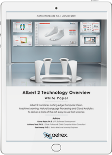 El proceso de escaneo rápido de 20 segundos de dos pies a la vez de Albert 2 captura datos precisos e inigualables sobre los pies de sus clientes para ayudarle a encontrar los zapatos o las plantillas ortopédicas adecuadas a la primera.
